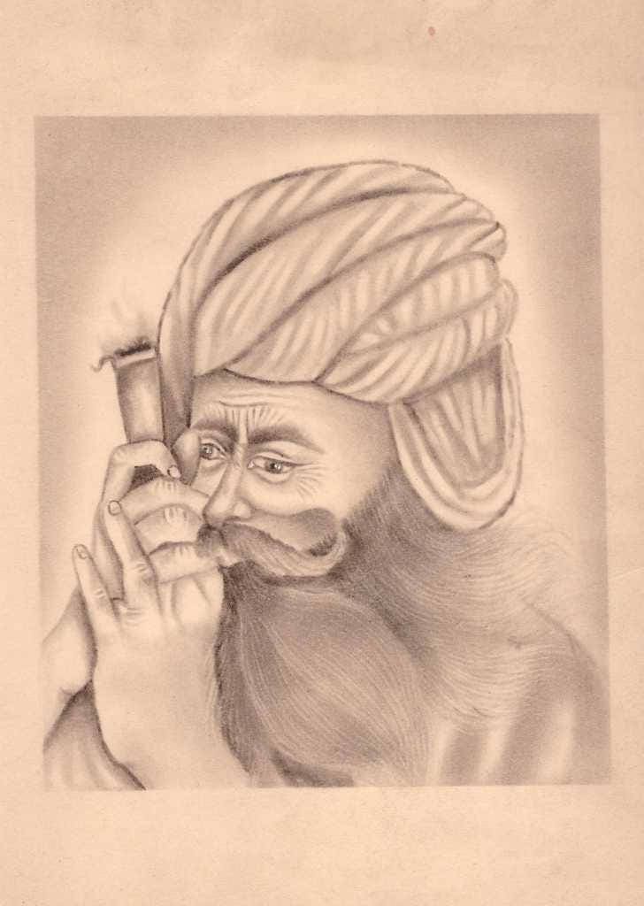 Realistic pencil sketch of yogi – handmade hippie wall art