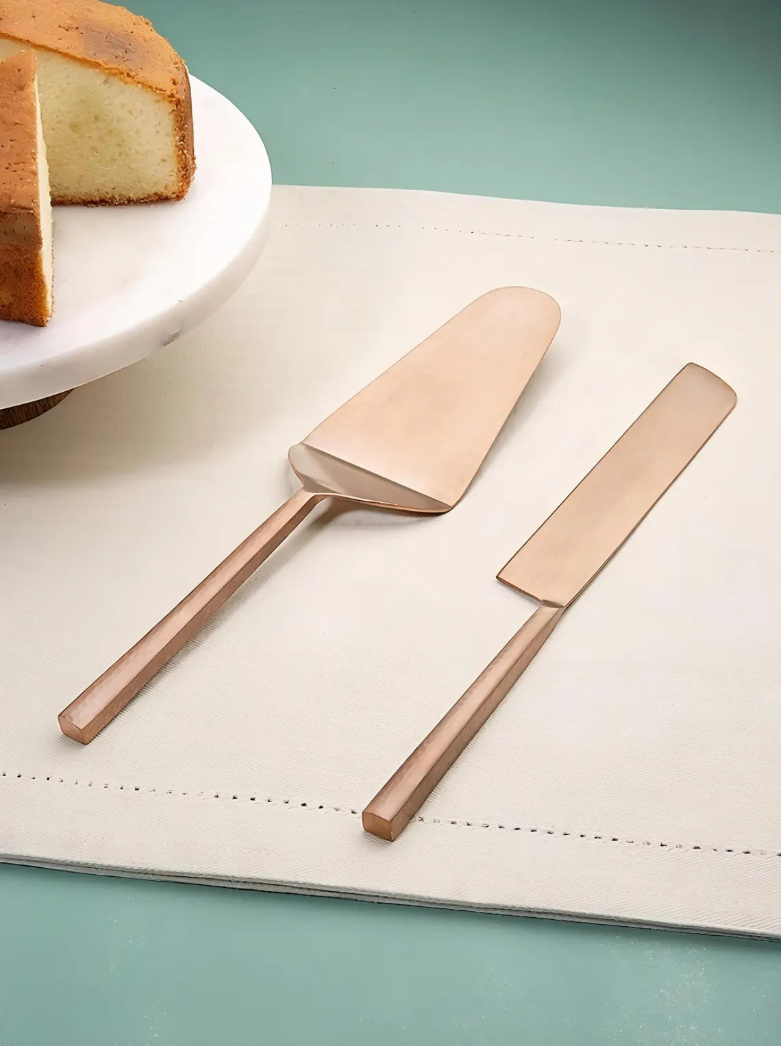 Rose gold wedding cake knife & server set – elegant 2-piece cake cutting set