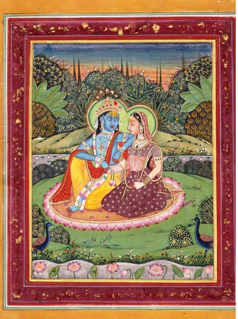 Vintage 1950s handmade indian miniature painting – radha krishna with real gold detailing