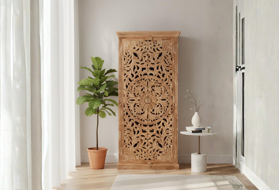 Hand-carved mango wood armoire – elegant indian wardrobe cabinet