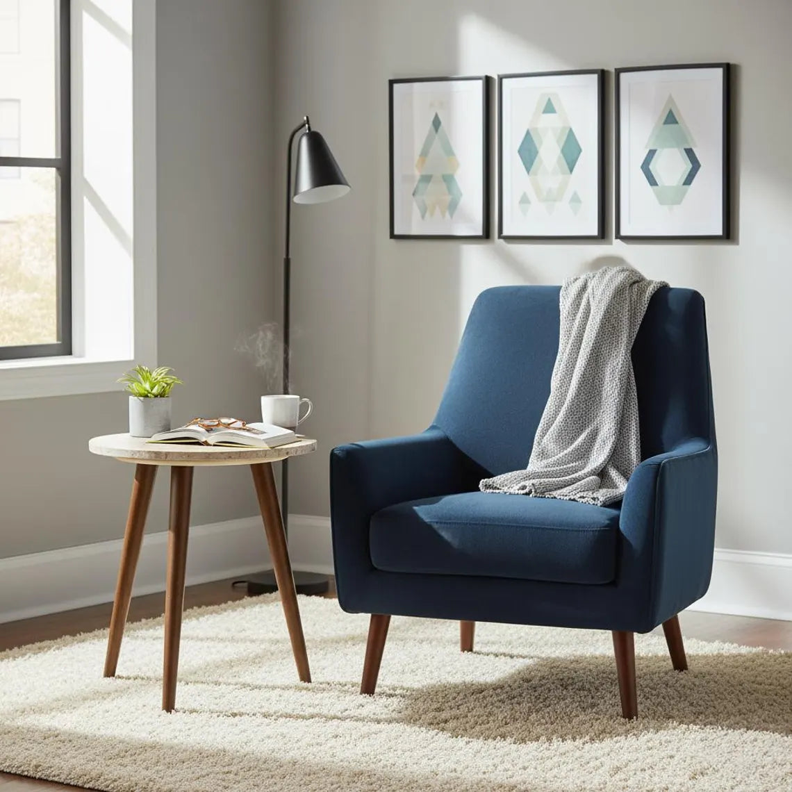 Handcrafted side table – natural stone top with solid wood legs for elegant modern home decor