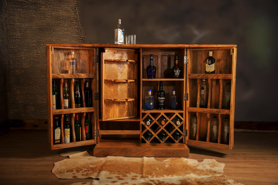 Handmade solid wood bar cabinet – premium home liquor storage & bottle organizer