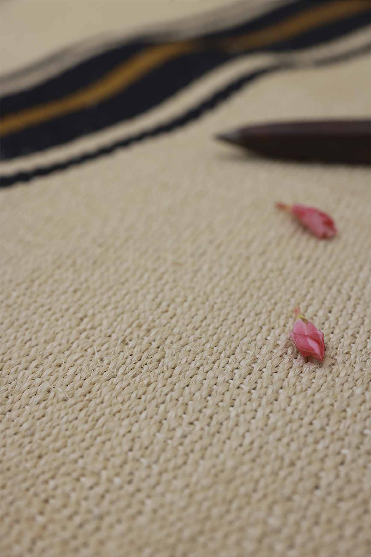 Introducing Dhanu, a rug that brings the timeless grace of Kerala’s traditional mundu and saree into your home. Each rug features the iconic ‘Kara’ stripes, both bold and subtle, against a pure white base crafted from solid white sisal—a plant-based fiber that echoes the softness of cotton. These handmade rugs capture the harmony and elegance of Kerala’s celebrated attire, blending cultural heritage with modern style. Perfect for adding a touch of festivity to any space, Kara rugs honor Kerala’s rich handloom traditions, making every piece a unique blend of craftsmanship and tradition.