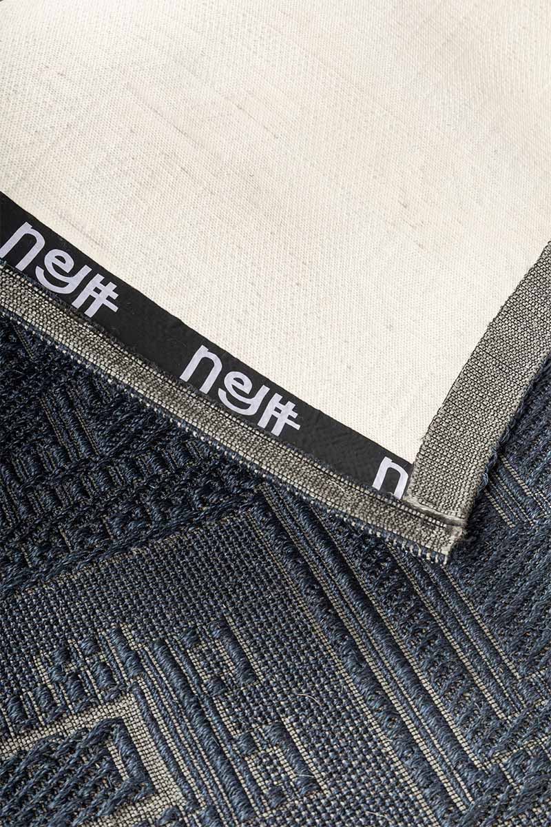 The Geometric Blue rug features a structured, symmetrical design with interlocking motifs resembling ornate quatrefoils. The balanced repetition of shapes gives the rug a refined yet timeless appeal. Its denim-inspired indigo background enhances the classic aesthetic, making it a sophisticated addition to any space