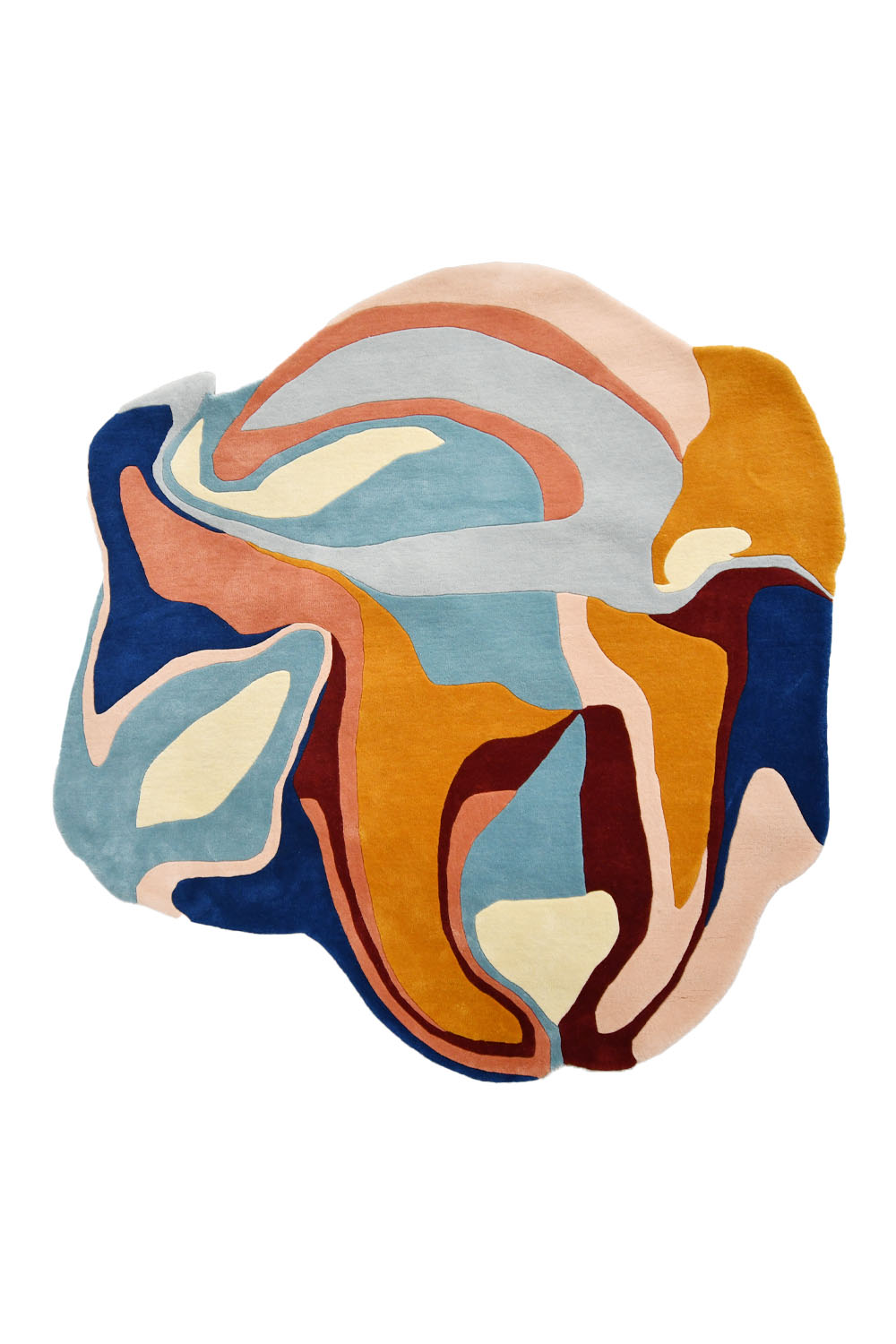 This colourful hand tufted rug in wool takes inspiration from the shapes and shades made by a fag end of lit, colour laden candles that often leave behind odd but unique shapes on the surface they touch.