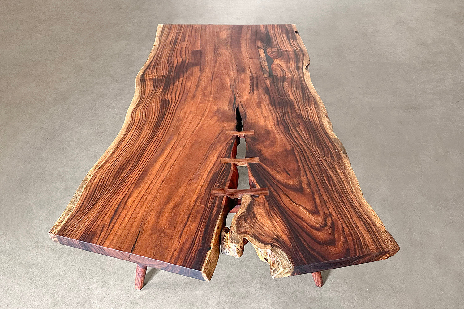 With its natural beauty on full display, this live-edge coffee table showcases the raw, organic contours of the wood, creating a striking and unique focal point for any living space. Made from the forked primary branches of a tree, the minimal design provides ample functional space.