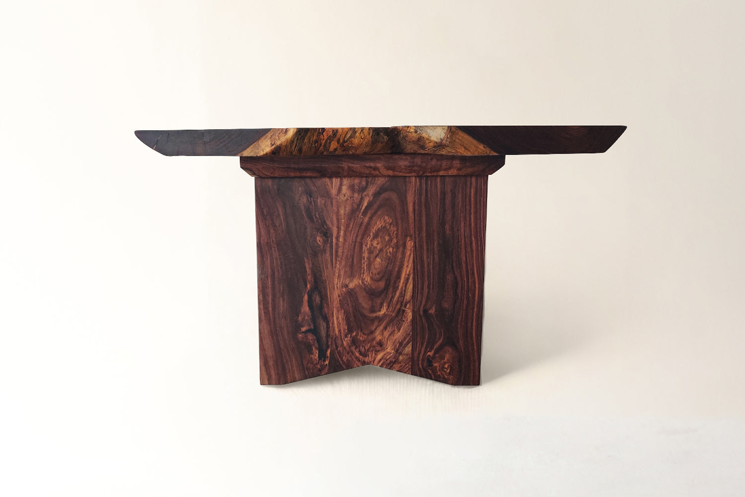 The item is made in rosewood and finished using a belgian oil. The oil brings out the natural color of the wood and also acts as sealant providing protection against spills & stains.