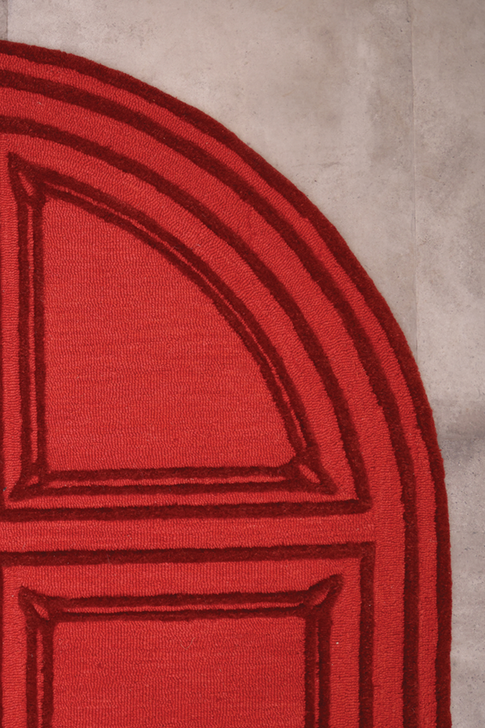 Made using the softest materials- wool and bamboo silk, it is entirely hand tufted by creating high and low elevations to the rug. The colour palette predominantly depicts the dusty turquoise shade of the doors in Kochi.