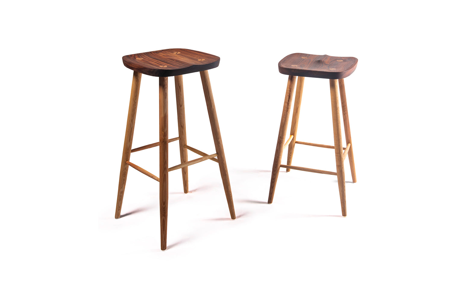 The Quatro Bar Stool embodies timeless elegance and unparalleled comfort. With a seat meticulously carved from rosewood, its scooped design offers a touch of luxury while showcasing the wood's natural grain pattern. The legs, crafted from white ash, not only provide stability but also add a striking visual contrast to the rich tones of the seat. Securely attached with wedged mortise and tenon joints, these stools are as durable as they are beautiful. Whether gracing kitchen counters, dining areas, or home bars, the Quatro Bar Stool effortlessly combines style and functionality.